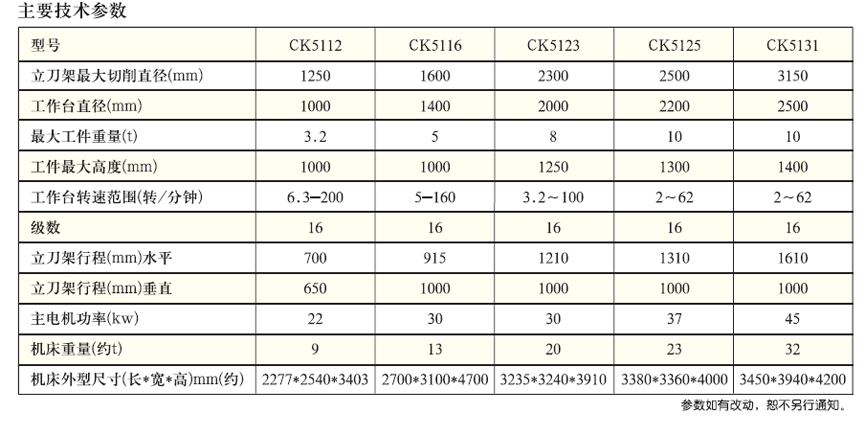 數控單柱立式車床CK5112 CK5116 CK5123 CK5125 CK5131